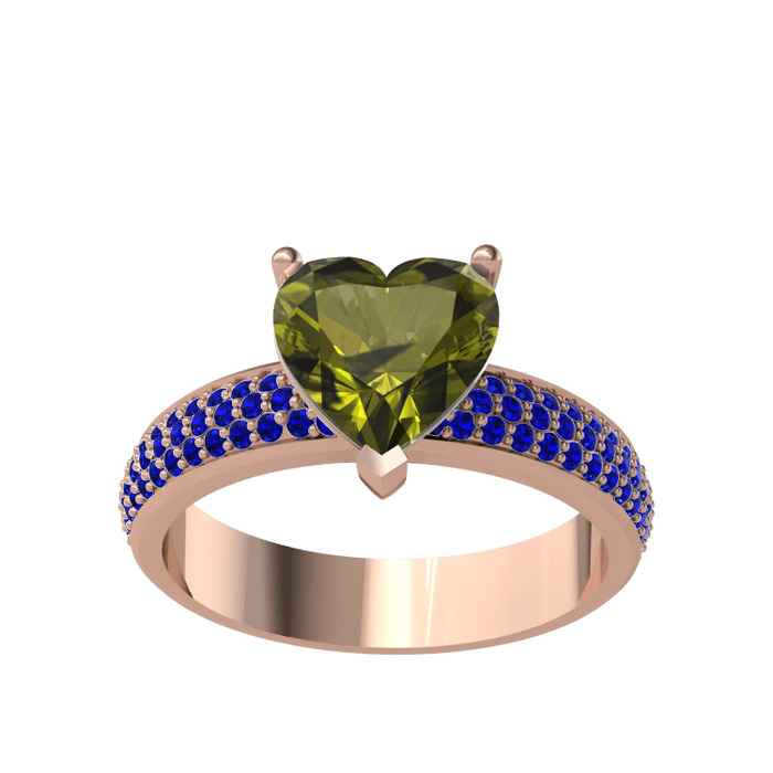 Peridot ve lab safir 925 ayar rose altın kaplama gümüş yüzük