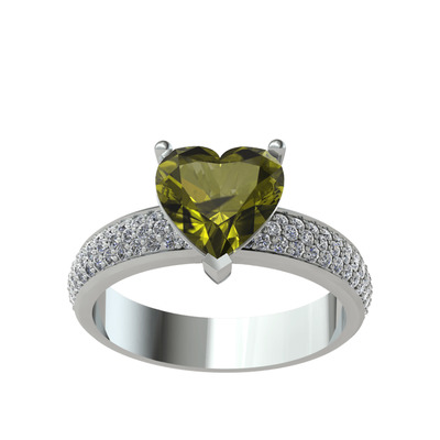 Peridot ve pırlanta 925 ayar gümüş yüzük (0.7392 karat)