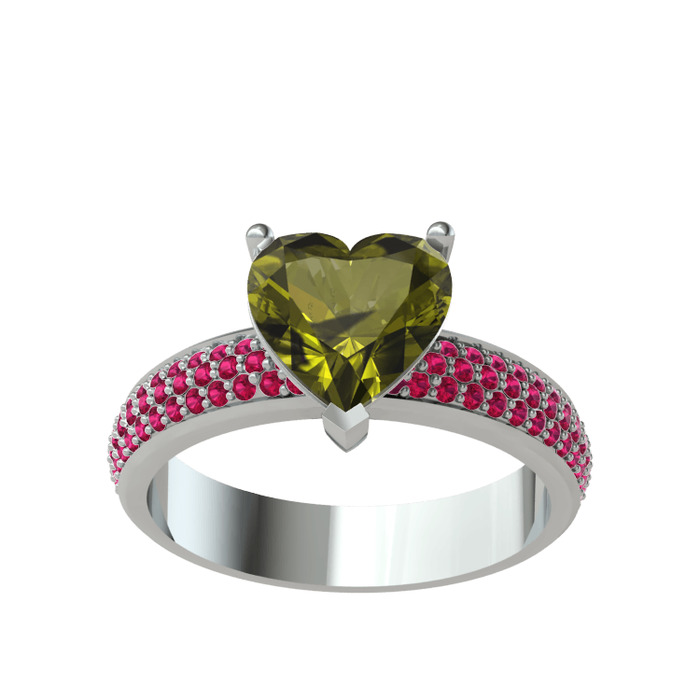 Peridot ve rodolit garnet 14 ayar beyaz altın yüzük