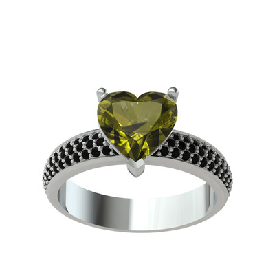 Peridot ve siyah zirkon 8 ayar beyaz altın yüzük