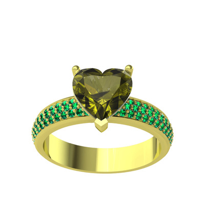 Peridot ve yeşil kuvars 18 ayar altın yüzük
