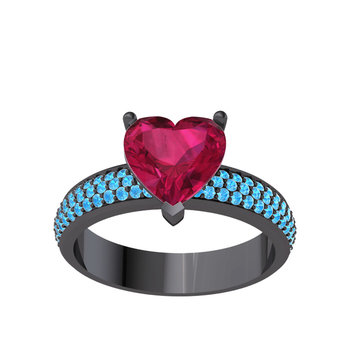 Rodolit garnet ve akuamarin 925 ayar siyah rodyum kaplama gümüş yüzük