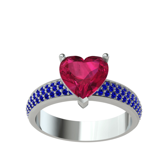 Rodolit garnet ve lab safir 18 ayar beyaz altın yüzük
