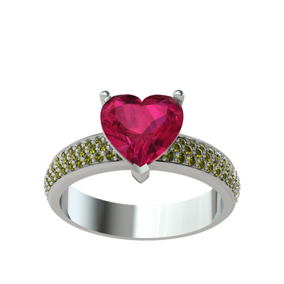 Rodolit garnet ve peridot 8 ayar beyaz altın yüzük
