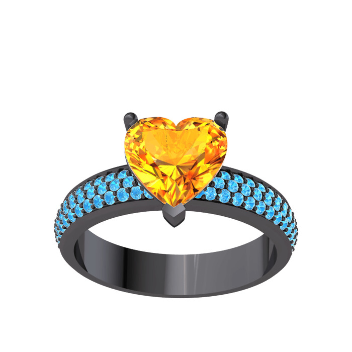 Sitrin ve akuamarin 925 ayar siyah rodyum kaplama gümüş yüzük