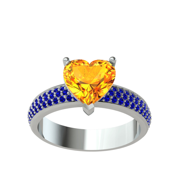 Sitrin ve lab safir 14 ayar beyaz altın yüzük