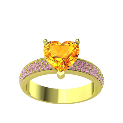 Sitrin ve pembe kuvars 18 ayar altın yüzük