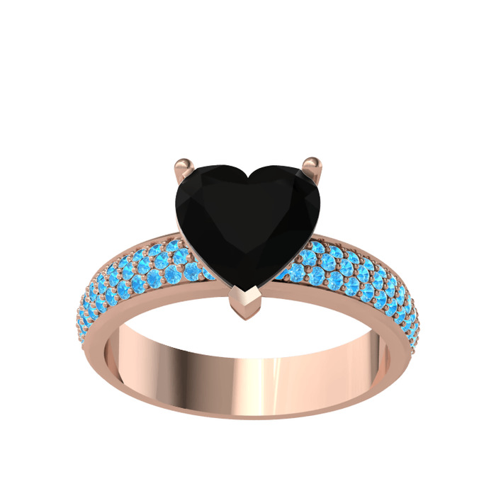 Siyah zirkon ve akuamarin 925 ayar rose altın kaplama gümüş yüzük