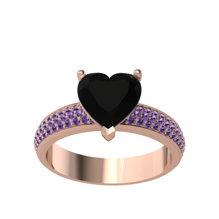 Siyah zirkon ve ametist 925 ayar rose altın kaplama gümüş yüzük