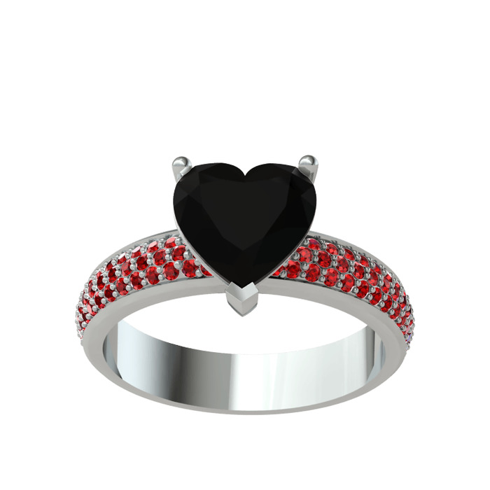 Siyah zirkon ve garnet 14 ayar beyaz altın yüzük