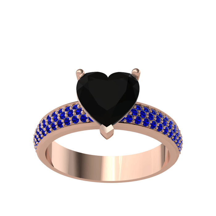 Siyah zirkon ve lab safir 925 ayar rose altın kaplama gümüş yüzük