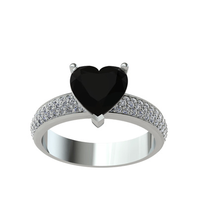 Siyah zirkon ve pırlanta 14 ayar beyaz altın yüzük (0.7392 karat)