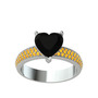 Siyah zirkon ve sitrin 14 ayar beyaz altın yüzük