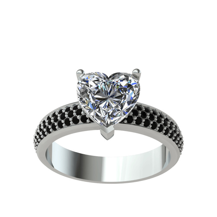 Swarovski ve siyah zirkon 14 ayar beyaz altın yüzük