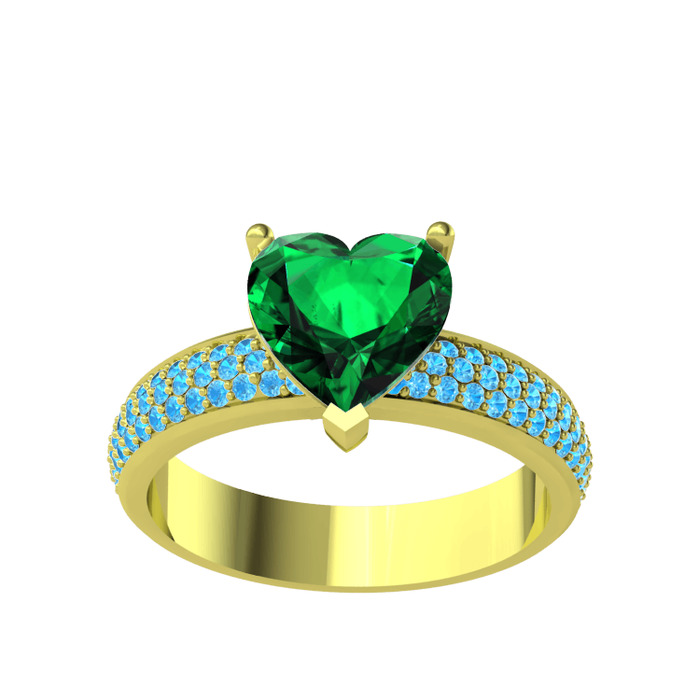 Yeşil kuvars ve akuamarin 14 ayar altın yüzük