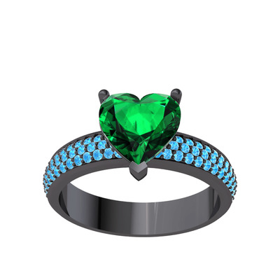 Yeşil kuvars ve akuamarin 925 ayar siyah rodyum kaplama gümüş yüzük