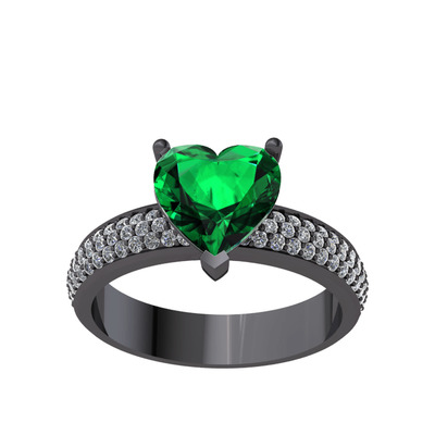 Yeşil kuvars ve beyaz zirkon 925 ayar siyah rodyum kaplama gümüş yüzük