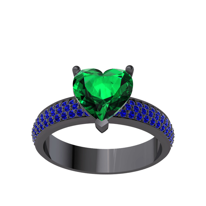 Yeşil kuvars ve lab safir 925 ayar siyah rodyum kaplama gümüş yüzük