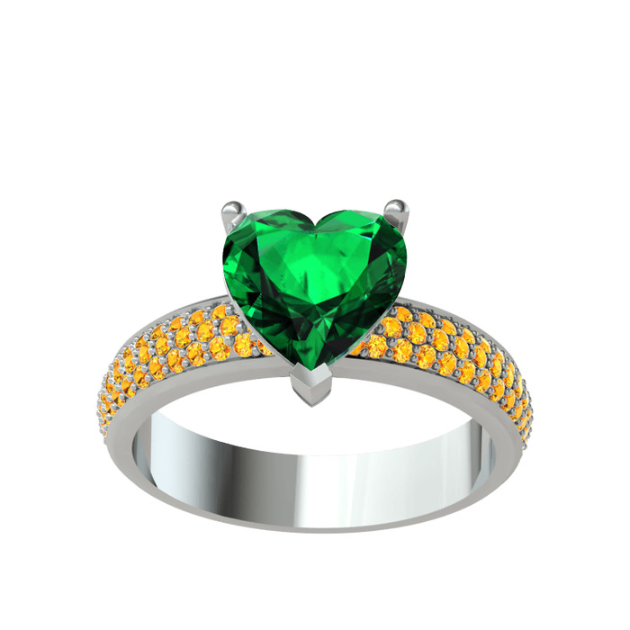Yeşil kuvars ve sitrin 8 ayar beyaz altın yüzük