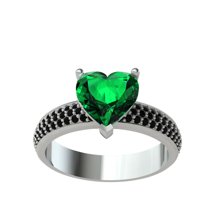 Yeşil kuvars ve siyah zirkon 14 ayar beyaz altın yüzük
