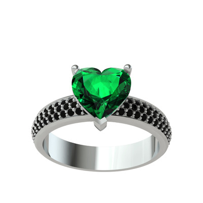 Yeşil kuvars ve siyah zirkon 18 ayar beyaz altın yüzük