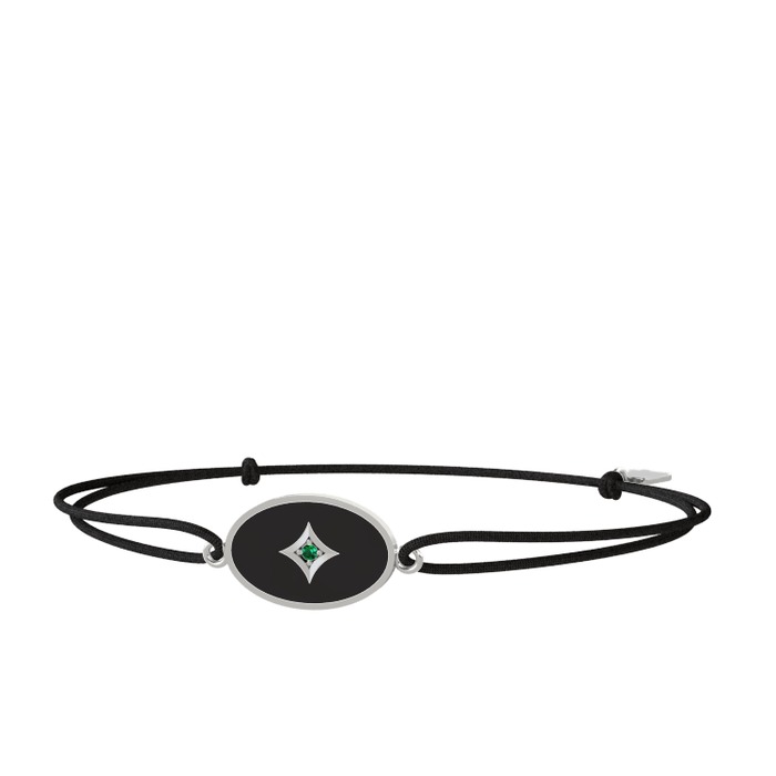 Yeşil kuvars 18 ayar beyaz altın bileklik (Siyah mineli)