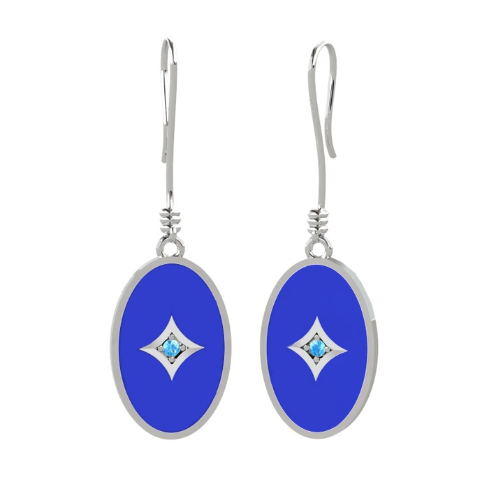 Akuamarin 14 ayar beyaz altın küpe (Lacivert mineli)