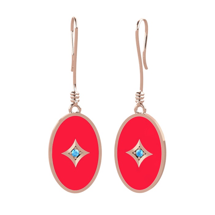 Akuamarin 14 ayar rose altın küpe (Kırmızı mineli)