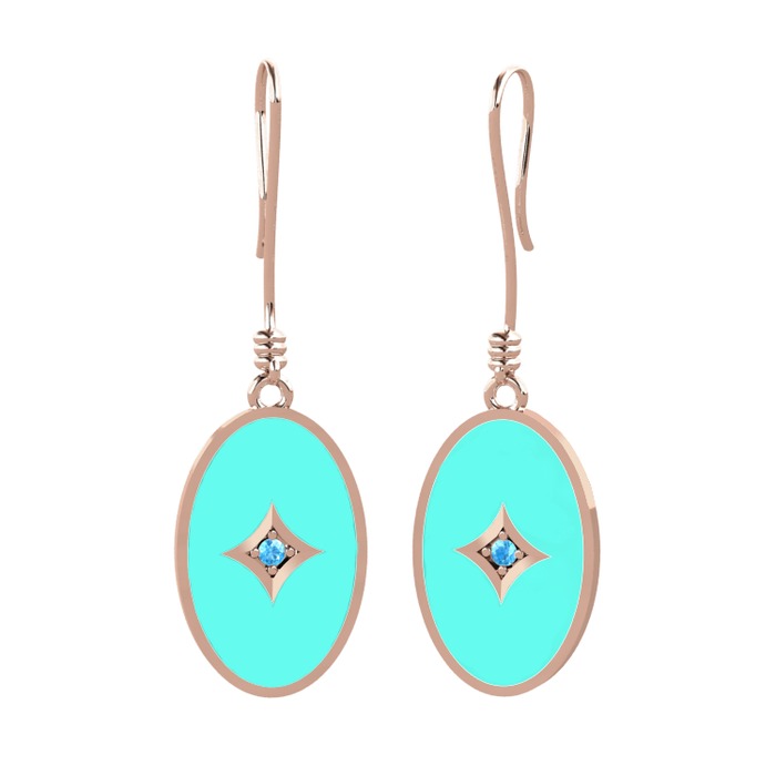 Akuamarin 18 ayar rose altın küpe (Turkuaz mineli)
