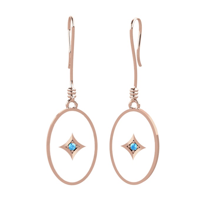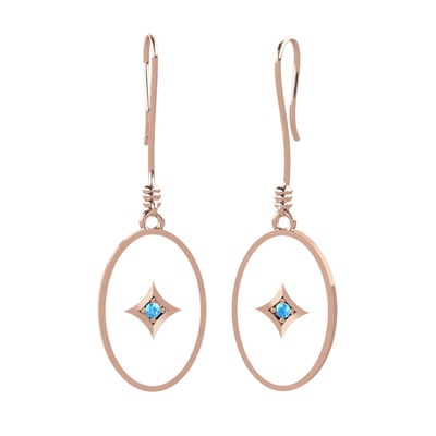 Akuamarin 925 ayar rose altın kaplama gümüş küpe (Beyaz mineli)