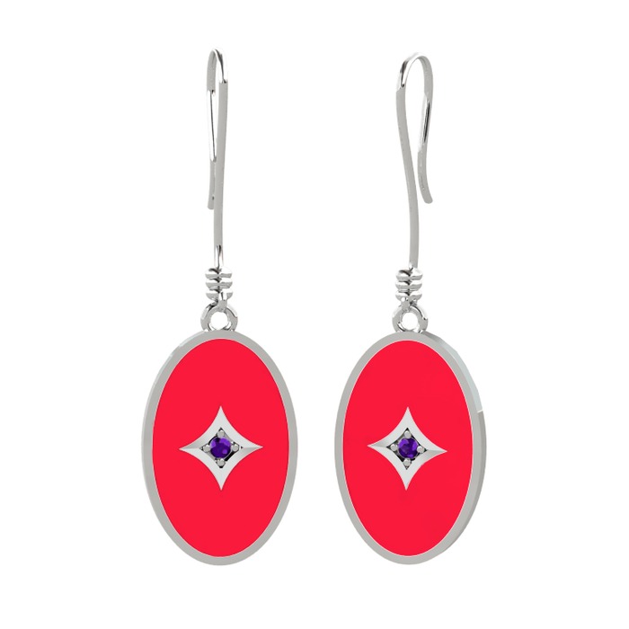 Ametist 14 ayar beyaz altın küpe (Kırmızı mineli)