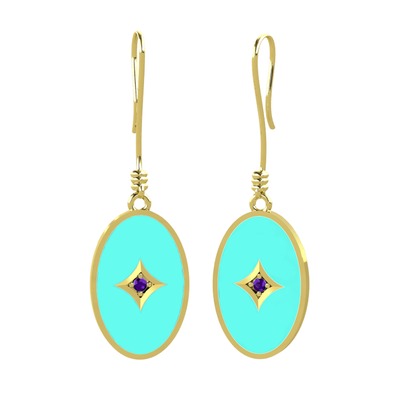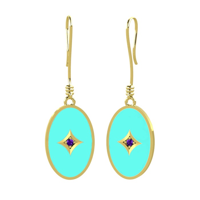 Ametist 18 ayar altın küpe (Turkuaz mineli)
