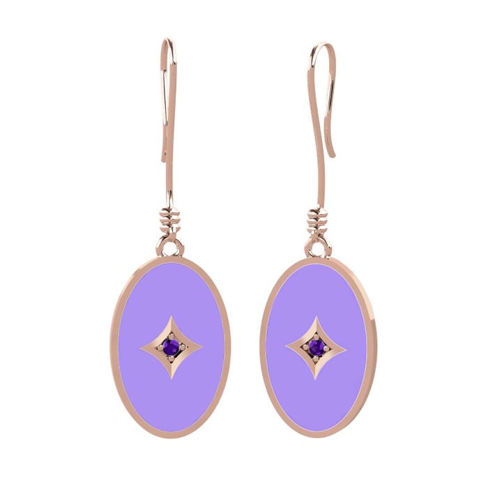 Ametist 8 ayar rose altın küpe (Menekşe mineli)