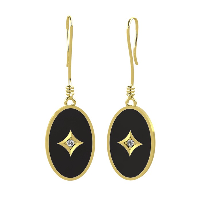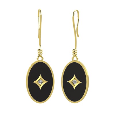 Beyaz zirkon 8 ayar altın küpe (Siyah mineli)