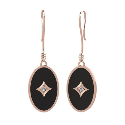 Beyaz zirkon 925 ayar rose altın kaplama gümüş küpe (Siyah mineli)