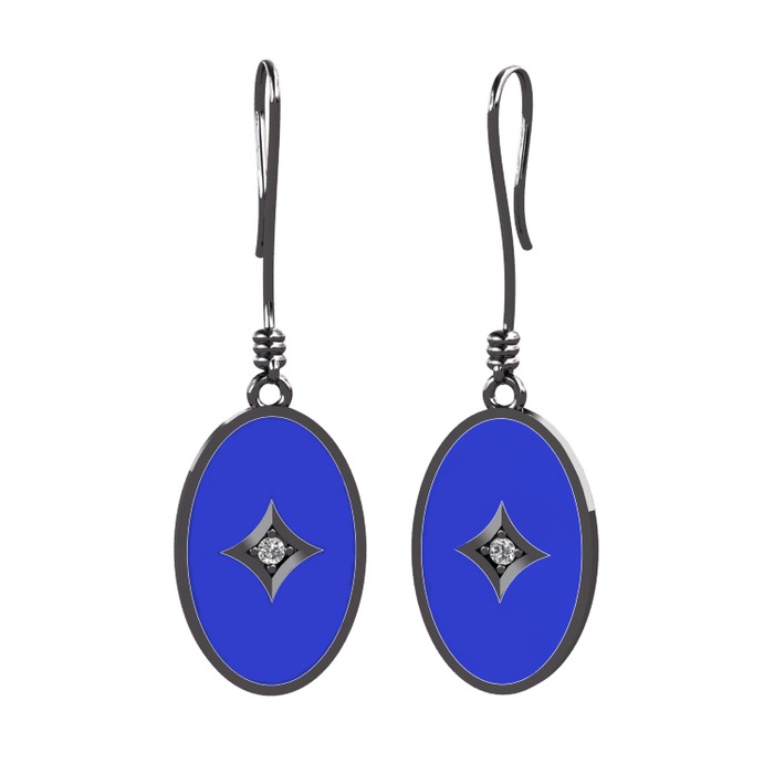 Beyaz zirkon 925 ayar siyah rodyum kaplama gümüş küpe (Lacivert mineli)