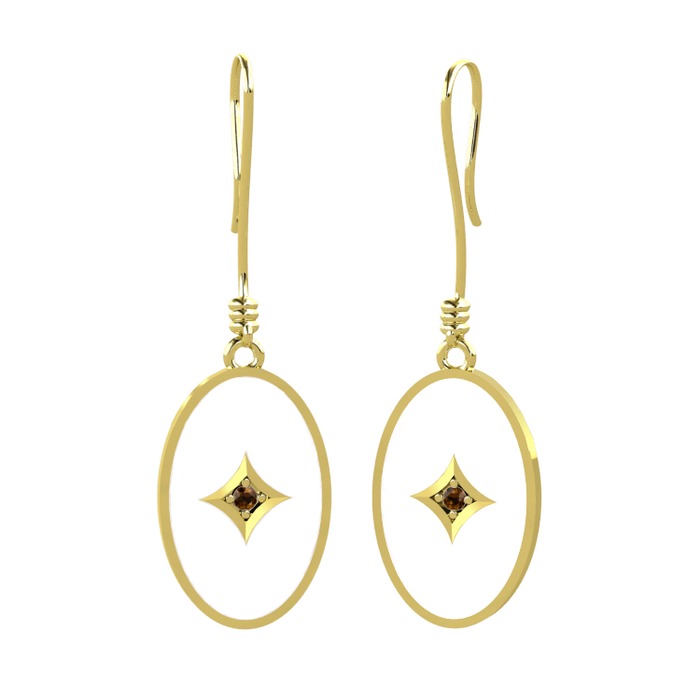 Dumanlı kuvars 925 ayar altın kaplama gümüş küpe (Beyaz mineli)