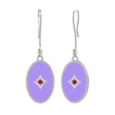 Garnet 8 ayar beyaz altın küpe (Menekşe mineli)