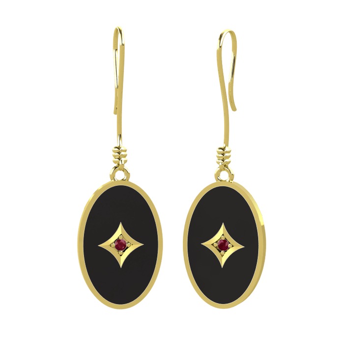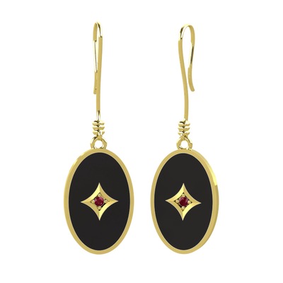 Kök yakut 18 ayar altın küpe (Siyah mineli)