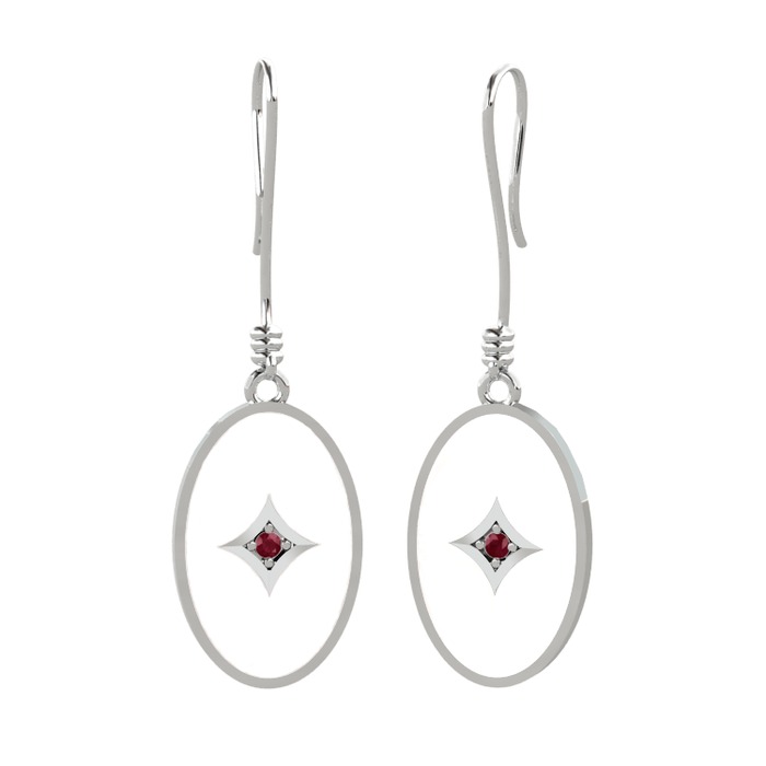 Kök yakut 8 ayar beyaz altın küpe (Beyaz mineli)