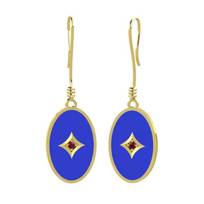 Kök yakut 925 ayar altın kaplama gümüş küpe (Lacivert mineli)