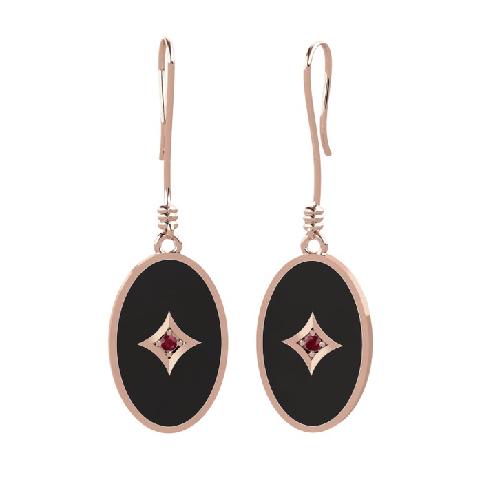 Kök yakut 925 ayar rose altın kaplama gümüş küpe (Siyah mineli)