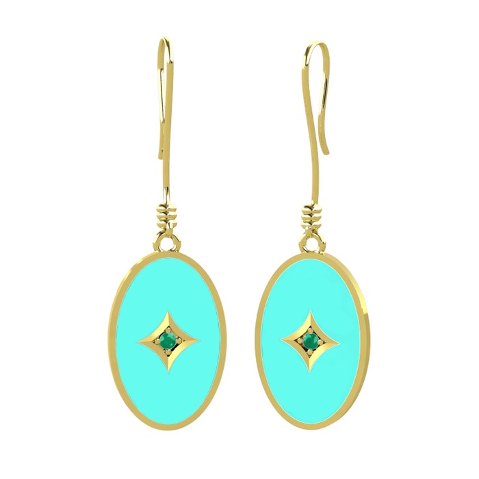 Kök zümrüt 14 ayar altın küpe (Turkuaz mineli)