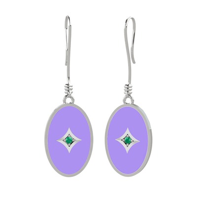 Kök zümrüt 8 ayar beyaz altın küpe (Menekşe mineli)