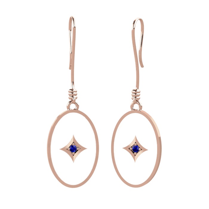 Lab safir 14 ayar rose altın küpe (Beyaz mineli)