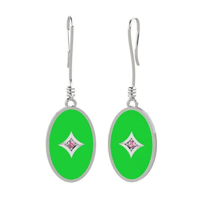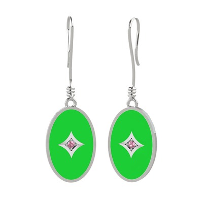 Pembe kuvars 14 ayar beyaz altın küpe (Yeşil mineli)