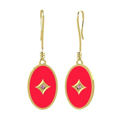 Pembe kuvars 18 ayar altın küpe (Kırmızı mineli)