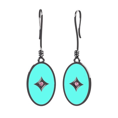 Pembe kuvars 925 ayar siyah rodyum kaplama gümüş küpe (Turkuaz mineli)