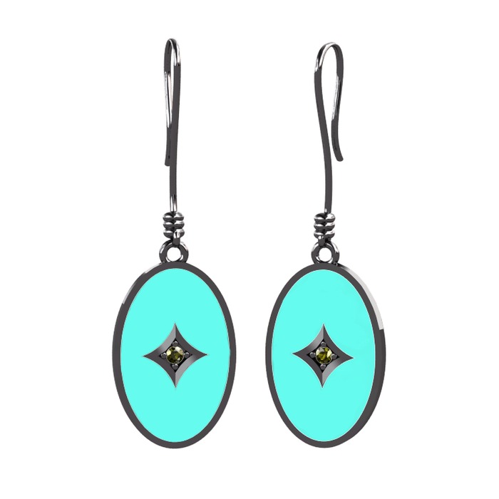 Peridot 925 ayar siyah rodyum kaplama gümüş küpe (Turkuaz mineli)