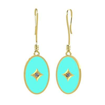 Pırlanta 14 ayar altın küpe (0.03 karat, turkuaz mineli)
